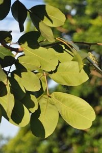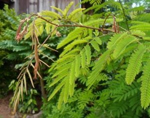 ใบ : เป็นไม้ใบรวม จะออกใบเป็นคู่ ๆ เรียงกันตามก้านใบ ก้านหนึ่งมีใบอยู่ประมาณ 10-18 คู่ ลักษณะของใบย่อย เป็นรูปขอบขนาน ปลายใบและโคนใบมน มีสีเขียวแก่